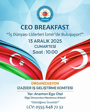 13 Aralık’ta İzmir iş dünyasının seçkin yöneticileri, CEO’ları ve karar verici iş insanlarını bir araya getiren özel bir kahvaltı organizasyonu gerçekleştiriyoruz.